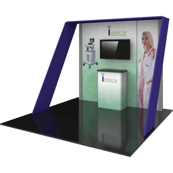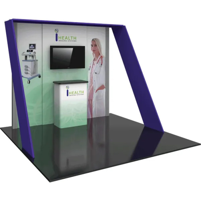 Kit includes frame, side/top white accent, three fabric graphic panels,