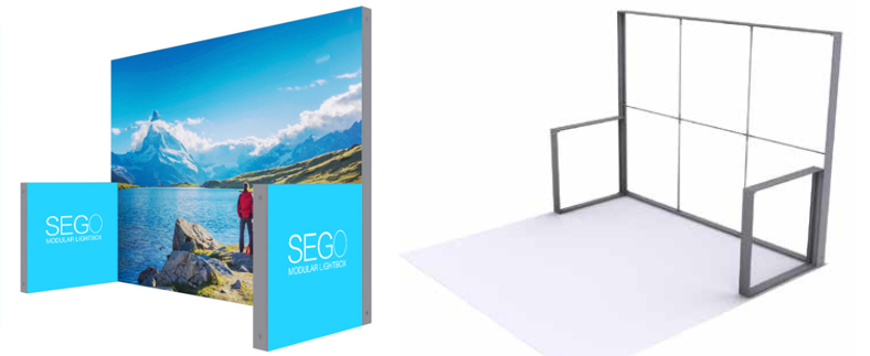 SEGO Modular Lightbox Display Configuration E - 10ft.x10ft. Double-Sided Graphic Package Includes: