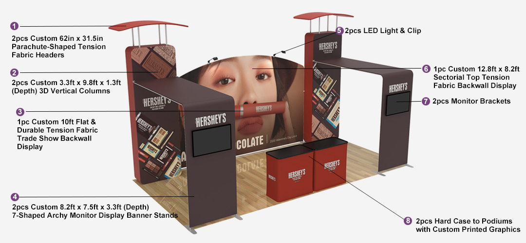 Are you interested in creating an exhibit booth that will be the #1 eye-catcher at your next event? Attract attention and build brand awareness with custom 10x20ft booth designs. Our aluminum-framed booths are manufactured to be easily transported and dismantled, offering an efficient option for advertising at any event.