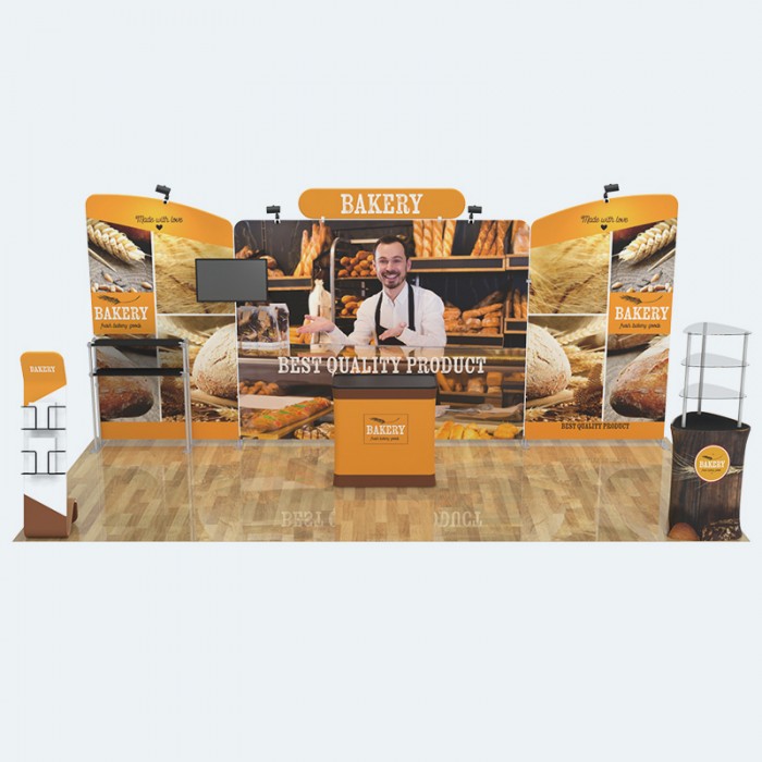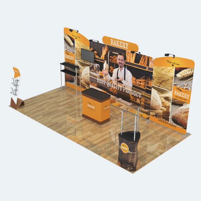 Are you interested in creating an exhibit booth that will be the #1 eye-catcher at your next event? Attract attention and build brand awareness with custom 10x20ft booth designs. Our aluminum-framed booths are manufactured to be easily transported and dismantled, offering an efficient option for advertising at any event.