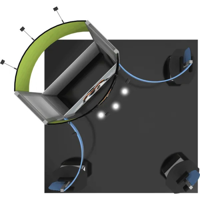 - Kit includes frame, accessible lockable storage space, four pillowcase graphics, two fabric graphic panels, three shaped Sintra panels, three counters, six small monitor mounts*, six 200 LED floodlights, two molded OCE storage cases and one woodcrate