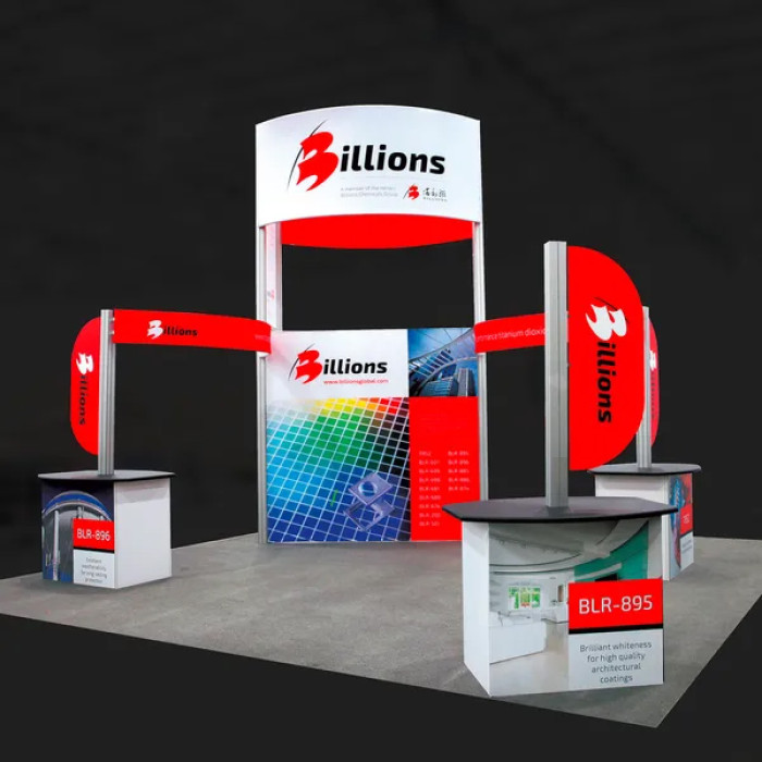 Hybrid Pro™ Modular Kit 17 is a striking 20ft x 20ft island exhibit,